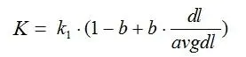 从K的定义中可以看到,参数b的作用是调整文档长度对相关性影响的大小。b越大,文档长度的对相关性得分的影响越大,反之越小。而文档的相对长度越长,K值将越大,则相关性得分会越小。这可以理解为,当文档较长时,包含qi的机会越大,因此,同等fi的情况下,长文档与qi的相关性应该比短文档与qi的相关性弱。