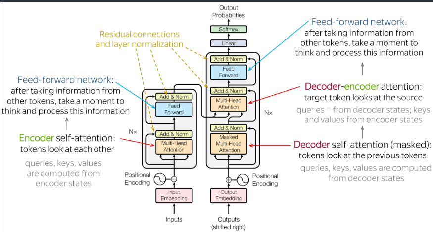 自注意力是模型的关键组成部分之一。注意 和自注意之间的区别在于,自注意在相同性质的表示之间运行:例如,某个层中的所有编码器状态。